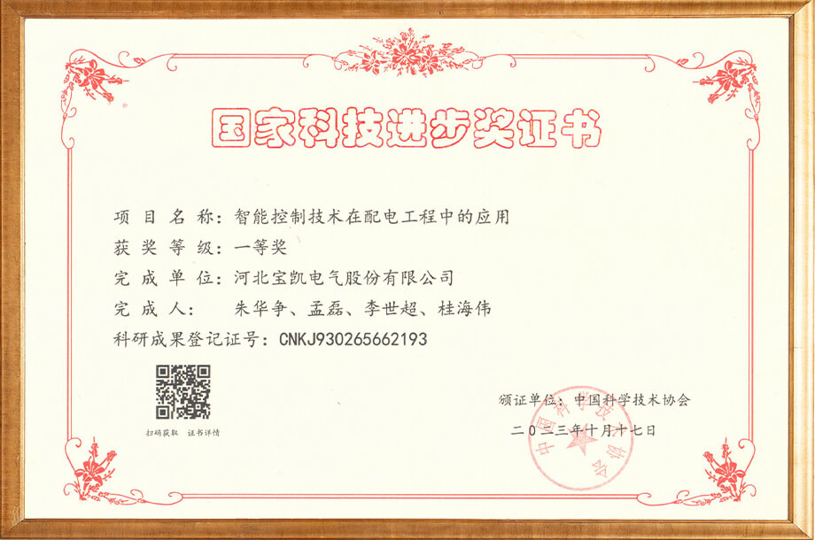 电力物联网用智能小型断路器-科技成果证书