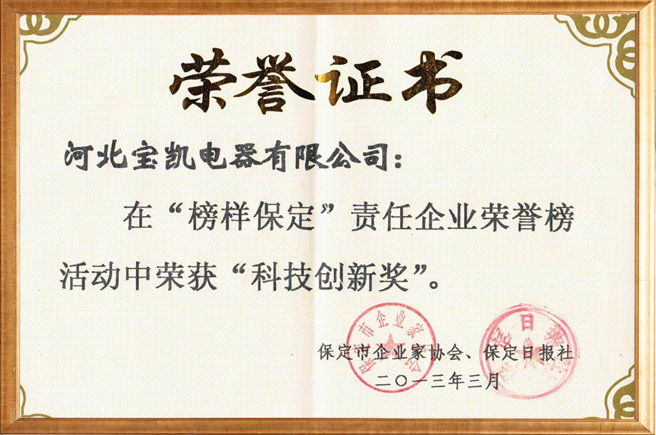 保定市智能电网用户端低压电器元件及成套设备技术创新中心