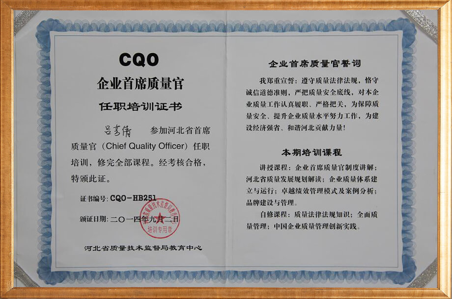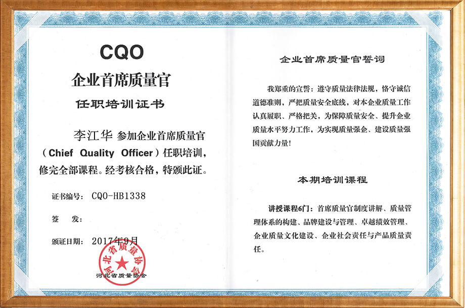 质量官证书