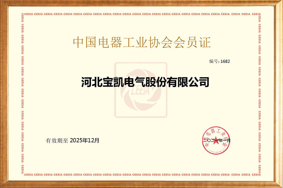 中国电器工业协会会员证